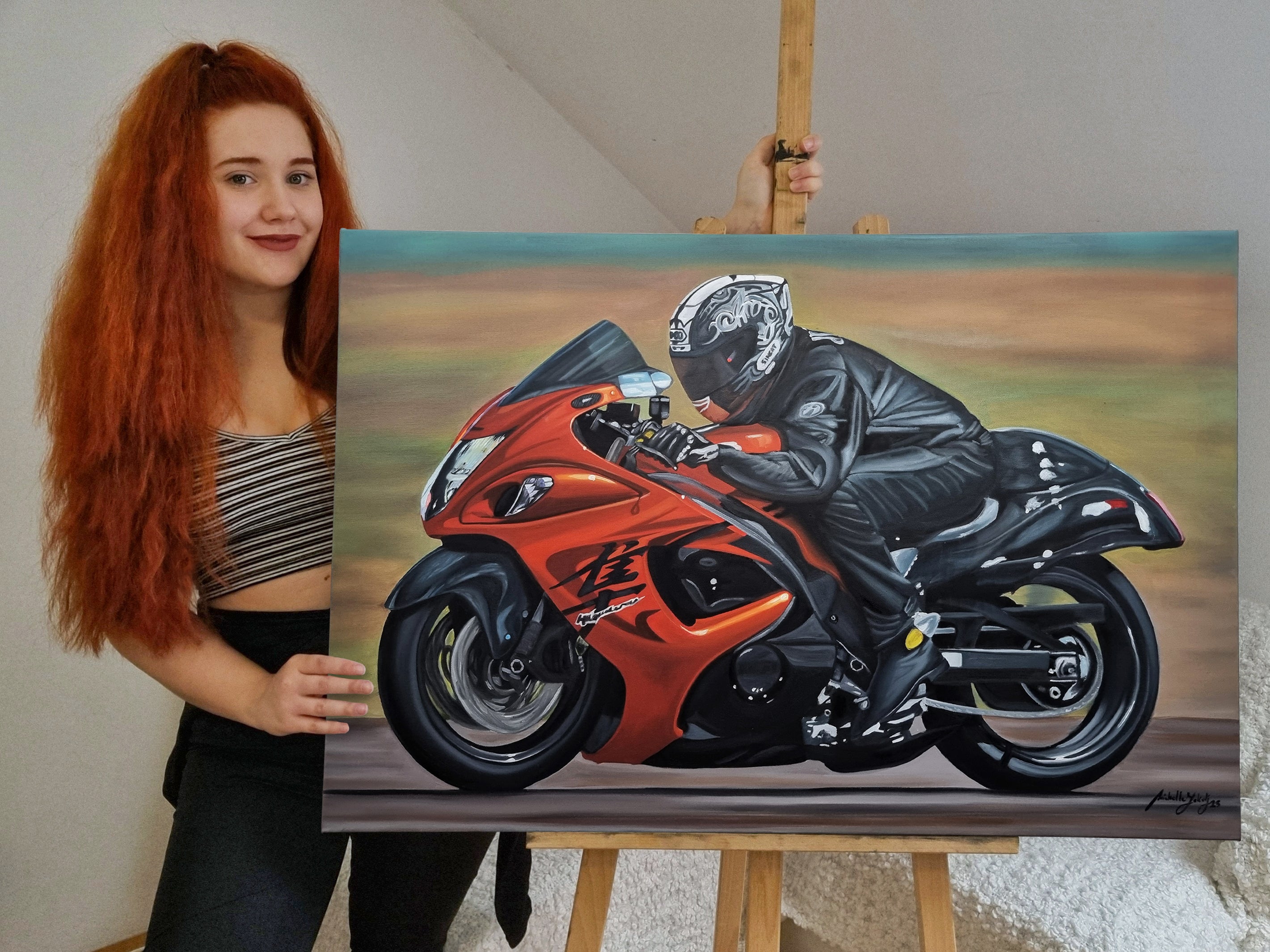Revitalize your love for biking with a personalized oil painting. Let me immortalize your ride on canvas, crafting a timeless artwork that reflects your unique connection to your bike.