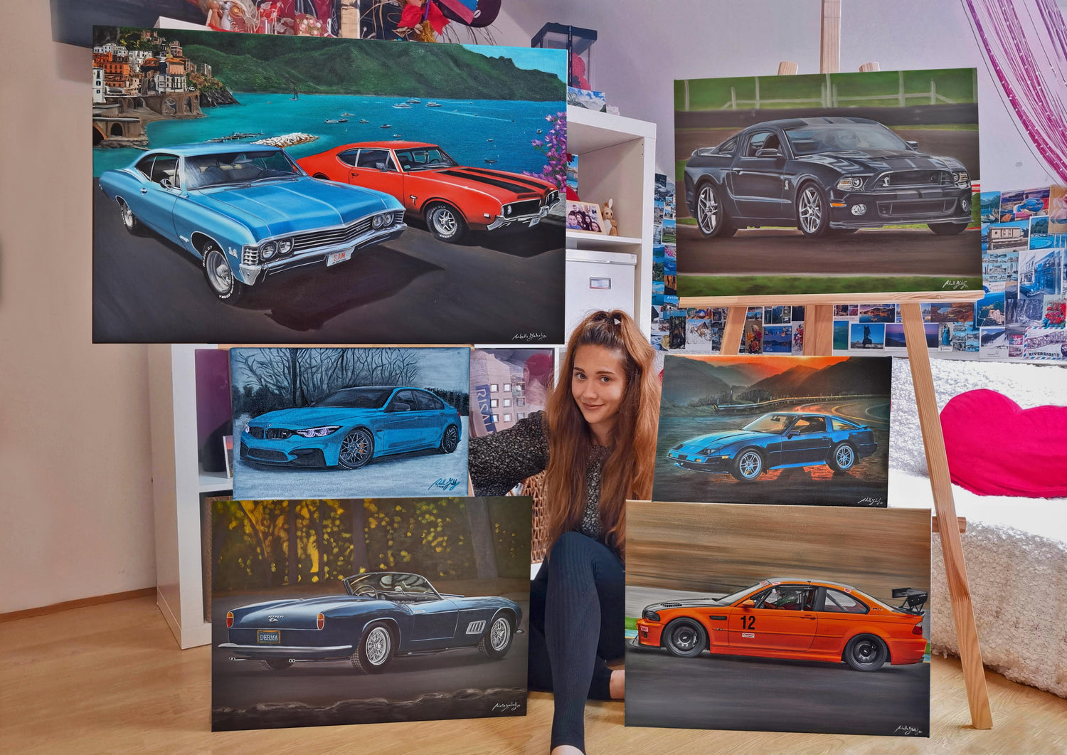 I'm a 25 years old self-taught artist from Slovenia who got to where she is with only a lot of hard work and quite a few failed painting attempts. I've never taken any art classes or anything like that, but art and cars have been a part of my life ever since I can remember.