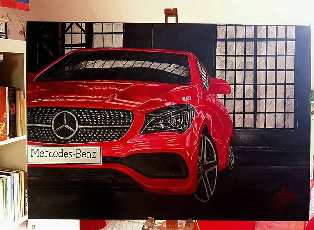 I've kept drawing and I've even started painting just to show myself I can and will do it. The first painting I ever painted was the one of Mercedes CLA. It took me almost a year to finish it because I had to give my hand some rest in between as well, and it's the only painting that will never be for sale.